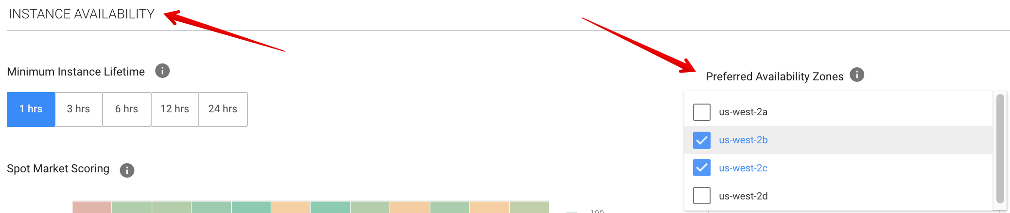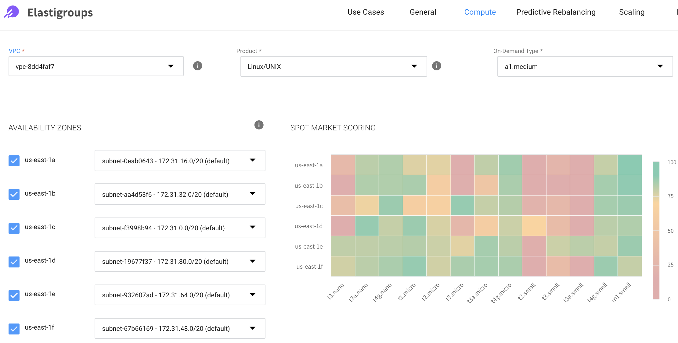 To diversify the spot markets available for the Elastigroup, it is highly recommended to choose all the AZs listed for the region.