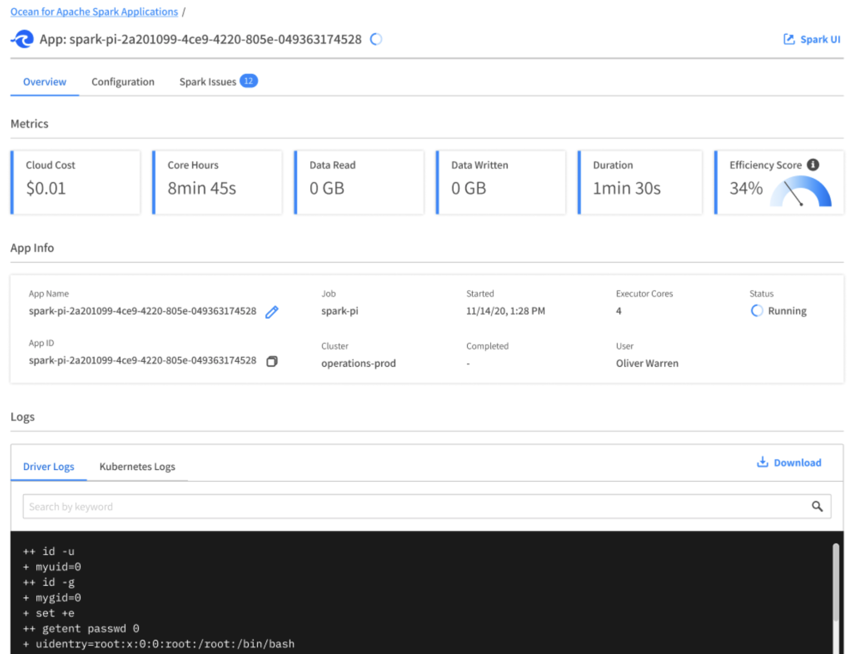 Beside the appId, Ocean Spark also set some defaults to increase the stability and performance of the app. Learn more about configuration management and auto-tuning.
